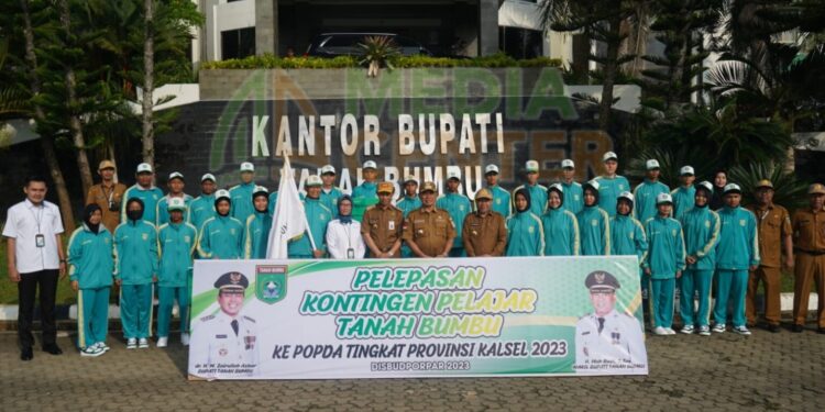 Tanah Bumbu — Bupati H.M. Zairullah Azhar melepas Kontingen atlet Kabupaten Tanah Bumbu (Tanbu) yang mengikuti Pekan Olahraga Pelajar Daerah (POPDA) 2023, Senin (22/5/2023) di Halaman Kantor Bupati di Gunung Tinggi, Batulicin.
