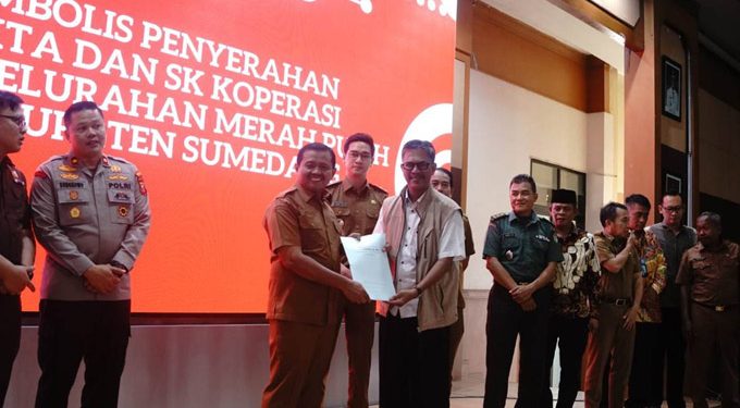 Dengan didampingi Wakil Bupati Sumedang, M. Fajar Aldila beserta unsur Forkopimda, Bupati Dony Ahmad Munir secara simbolis menandai peluncuran dengan menyerahkan Akta Pendirian dan Surat Keputusan Menteri Hukum RI tentang Pengesahan Pendirian Badan Hukum Koperasi kepada 26 Perwakilan KDMP se Kabupaten Sumedang. (hms/bon)
