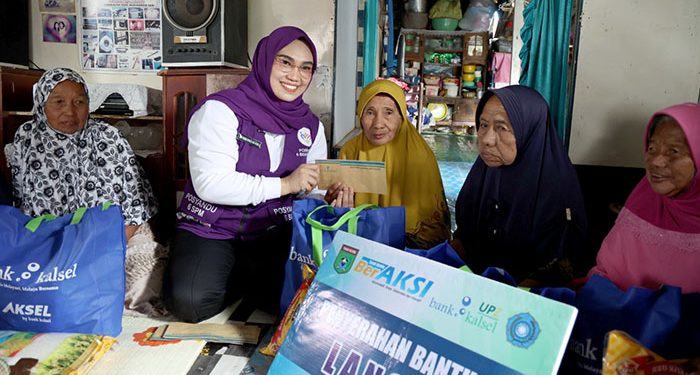 Tidak sendirian, Andi Irmayani beserta jajaran pengurus Posyandu berkolaborasi dengan Pemerintah Kabupaten Tanah Bumbu dan Bank Kalsel untuk menyalurkan bantuan langsung kepada warga yang membutuhkan.