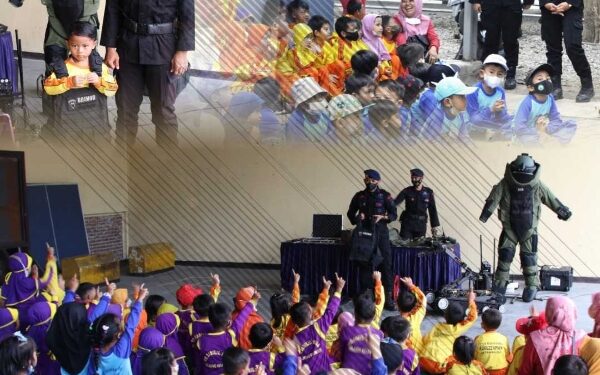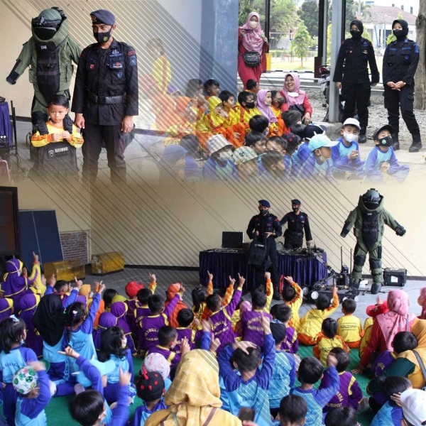 Sumedang,-Anggota Polwan Sat Brimob Polda Jabar, personel Batalyon A Pelopor dan personel Detasemen Gegana Sat Brimob Polda Jabar mendampingi kunjungan anak anak sekolah TK dari wilayah Kecamatan Jatinangor, Kamis (15/09/2022).