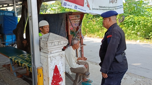 Bripka Diki mengunjungi kerumunan masyarakat yang tengah beraktifitas tepatnya di Desa Cirebon Girang Kecamatan Talun Kabupaten Cirebon.
