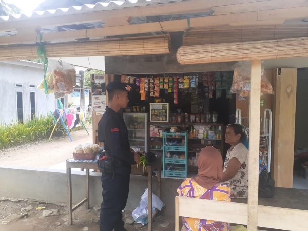 Jabar,-Sudah menjadi tugas pokok sebagai anggota Kepolisian yang selalu ada ditengah-tengah masyarakat, seperti yang dilakukan Anggota Kompi 2 Batalyon D Bripda Firman memberikan pembinaan dan penyuluhan kamtibmas kepada kepada ibu-ibu yang sedang melaksanakan kegiatan berbelanja di warung.