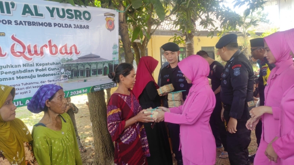 Cirebon,-Jajaran Kompi 4 Batalyon C Pelopor Satbrimob Polda Jabar di pimpin oleh Danki 4 IPTU Jajang melaksanakan pembagian hewan Qurban kepada masyarakat sekitar Desa Winong kecamatan Gempol Kabupaten Cirebon.