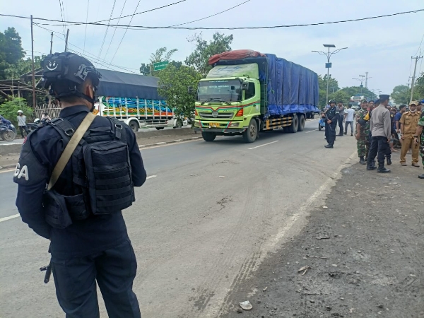 Anggota Brimob Jabar Lakukan Pengamanan Pasca Kebakaran Pabrik Busa