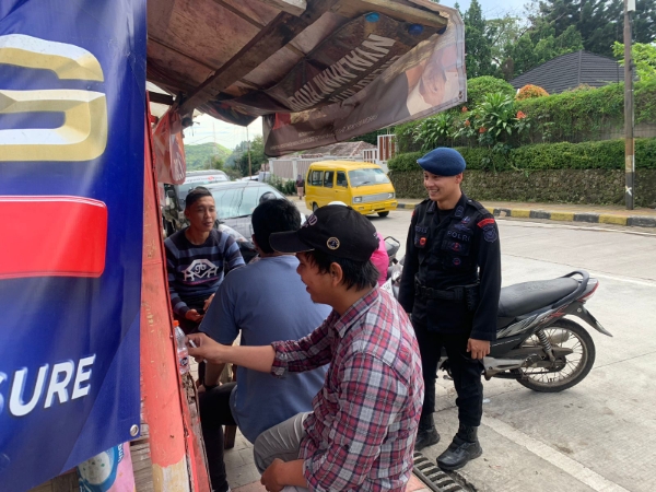 Kali ini anggota menghampiri warga masyarakat yang sedang berada di warung desa Sindanglaya, dengan humanis anggota patroli berikan himbauan maupun penyuluhan kepada warga selalu berhati-hati dalam melaksanakan aktifitasnya disamping itu selalu rukun antar warga setempat.