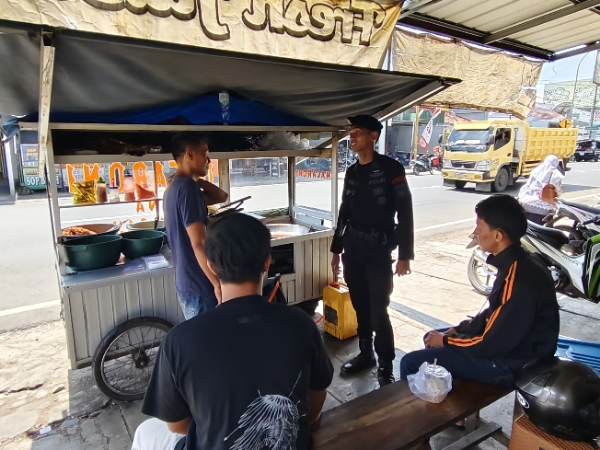 Tasikmalaya,Bripda Najmi anggota Brimob Tasikmalaya melaksanakan giat patroli harkamtibmas kepada Pedagang Makroni demi terjaganya keamanan masyarakat.