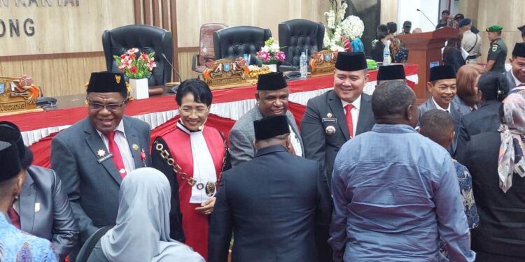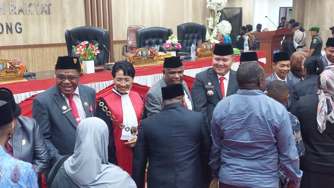 Para peserta rapat paripurna tampak antusias dan optimis menyambut masa depan Kota Sorong yang lebih baik.