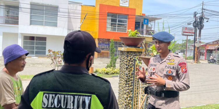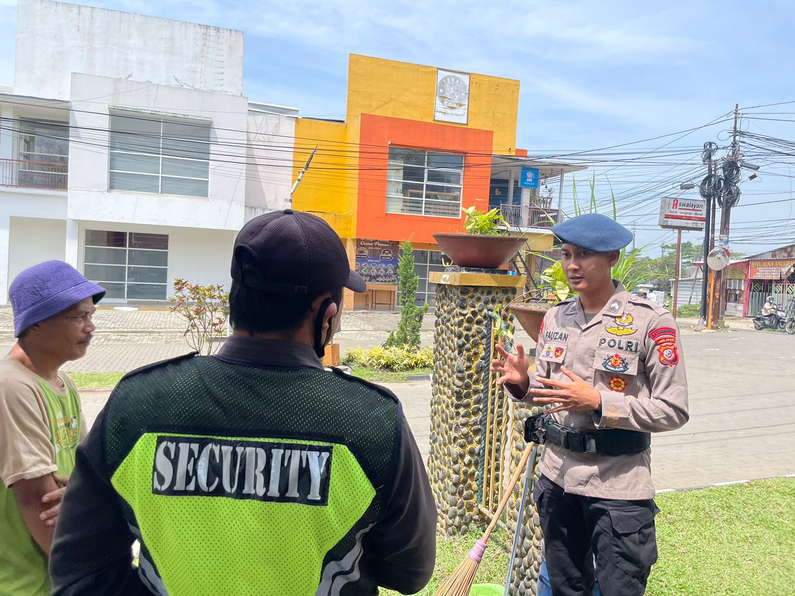 “Ma af sebelum nya menggagu waktu nya sebentar bapa-bapa mengganggu waktu nya sebentar , karena saya di sini hanya berpatroli saja untuk menjaga ke amanan tempat ini karena kita tahu bahwa sekarang-sekarang ini banyak sekali premanisme yang mendatangi warga untuk meminta uang dan oleh karena itu bilamana terjadi di tempat ini supaya bisa memberitahukan kami agar kami dapat membantu mengamankan nya” Ujar beliau kepada mereka