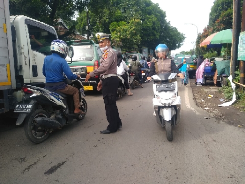 Kanit lalu lintas Polsek Batujajar AKP Tarmubi melaksanakan pemantauan lalulintas di Depan mako dan di Pos Gatur Cangkorah juga Graha Kencana pada Jumat (23/6/2023) .