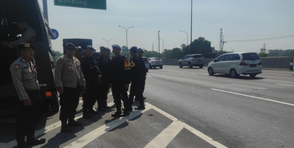 Cirebon,-Anggota Kompi 4 Batalyon C Pelopor Satbrimob Polda Jabar dipimpin oleh Danton 2 Aipda Putut Sihono melaksanakan Patroli Harkamtibmas di Gerbang tol Palimanan di Desa Palimanan Kecamatan Gempol Kabupaten Cirebon guna memantau kamtibmas di sekitar gerbang Tol