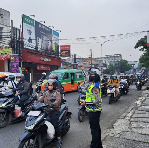 Anggota Sat Lantas Polres Cimahi Sigap Mengurai Kepadatan Kendaraan