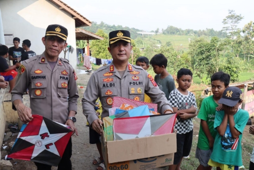 Kapolres Cimahi juga melakukan penyisiran dan membersihkan jaringan listrik tegangan tinggi dari layangan yang menempel.
