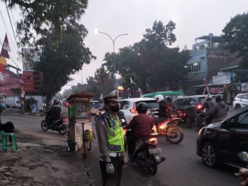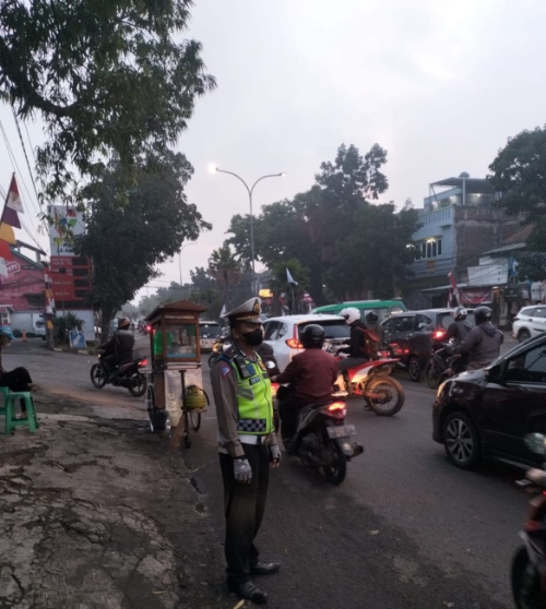 BANDUNG, — Polrestabes Bandung, Personel Polsek Bandung Kidul melaksanakan Yanmas pagi pengaturan arus Lalu lintas pada pagi hari di titik Persimpangan jalan antisipasi Kemacetan