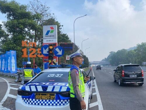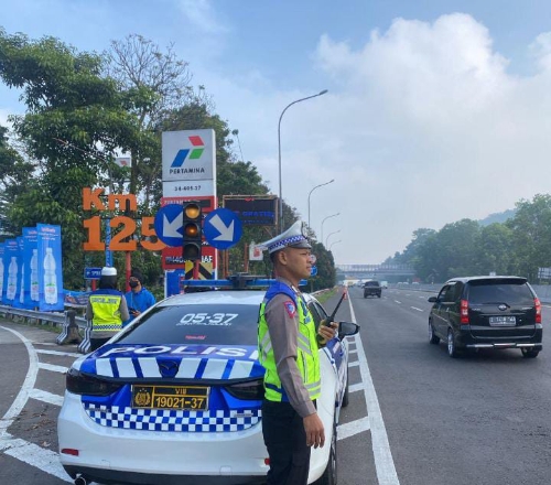 Pemantauan arus laulintas intens dilaksanakan anggota Sat Lantas Polres Cimahi di Jalan tol cipularang arah Jakarta yang menjadi jalur balik apra pemudik dan juga para wisatawan.