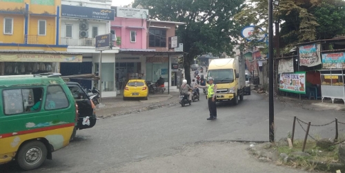 Anggota Unit lalu lintas Polsek Margaasih Aiptu Dadan S., Bripka Ibnu,Bripka Eko Y. Bersama Brigadir Gan Yan. Intens melaksanakan pelayanan pagi hari di Pos Gatur di Depan mako dan di Pos Gatur Pasar Dimensi, pada Jumat (16/6/2023) .