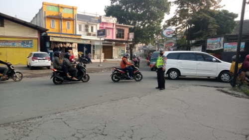 Anggota Unit lalu lintas Polsek Margaasih Aiptu Dadan S., Bripka Ibnu,Bripka Eko Y. Bersama Brigadir Gan Yan. Intens melaksanakan pelayanan pagi hari di Pos Gatur di Depan mako dan di Pos Gatur Pasar Dimensi, pada Sabtu (24/06/2023) .