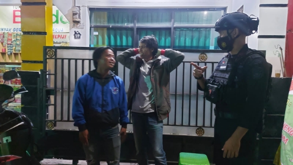 Team Patroli Sambang Harkamtibmas dari Piket Mako Kompi 4 Batalyon A Pelopor Satbrimob Polda Jabar Dipimpin Bharaka Rivan Rivai Ramdhani melaksanakan kegiatan Patroli Jalan kaki didepan Mako Brimob Garut untuk memberikan himbauan kepada masyarakat yang sedang berjualan.