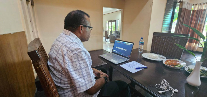 Asisten ll Setda Kabupaten Maybrat, Engelbertus Turot, SP., M.Si mewakili Pj. Bupati Maybrat Bernhard E. Rondonuwu mengikuti pertemuan melalui zoom meeting yang dipimpin Pj. Gubernur Papua Barat Daya