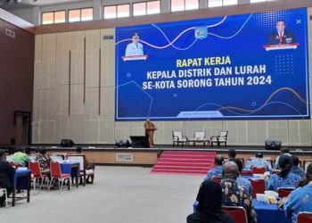 SORONG,-- Pj Wali Kota Sorong, Dr. Bernhard Eduard Rondonuwu, S.Sos., M.Si., memimpin Rapat Kerja Kepala Distrik dan Lurah se-Kota Sorong...