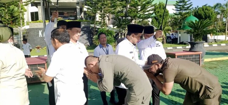 “Atas nama Pemerintah Daerah ataupun pribadi, saya meminta maaf kepada semua staf hingga para pejabat, barangkali ada kata dan perbuatan yang tidak berkenan selama ini,” kata Bupati saat menjadi inspektur upacara. (ag)