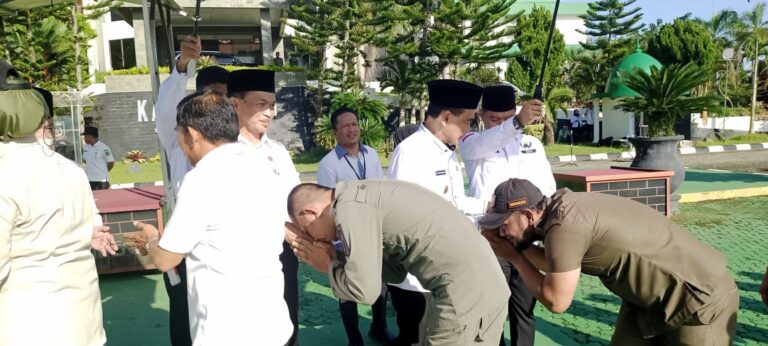 “Atas nama Pemerintah Daerah ataupun pribadi, saya meminta maaf kepada semua staf hingga para pejabat, barangkali ada kata dan perbuatan yang tidak berkenan selama ini,” kata Bupati saat menjadi inspektur upacara. (ag)