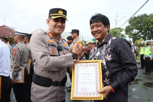 Sukabumi,-Dadang Kuswandi  (55 tahun), warga Cikondang Citamiang Kota Sukabumi menerima piagam penghargaan Kapolres Sukabumi Kota Polda