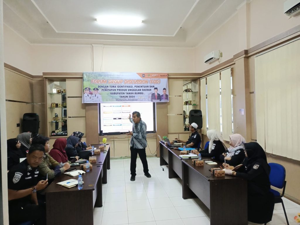 Kegiatan FGD tersebut di gelar di ruang rapat Bappedalitbang dengan melibatkan berbagai instansi terkait dalam pembahasan produk unggulan daerah tersebut (18/07/2024).