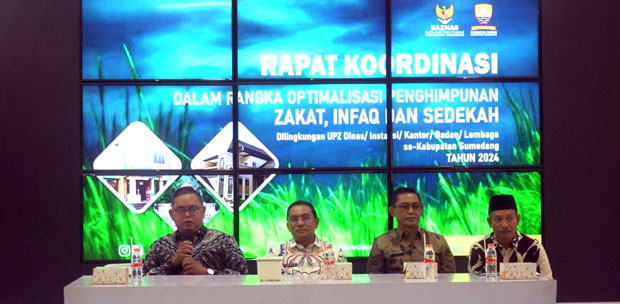 SUMEDANG,– Dalam rangka optimalisasi penghimpunan zakat, infaq dan sedekah (ZIS), Baznas Kabupaten Sumedang menggelar Rapat Koordinasi dengan UPZ dinas/instansi/badan/kantor/lembaga se-Kabupaten Sumedang di Aula Baznas Sumedang, Kamis (27/06/2024).
