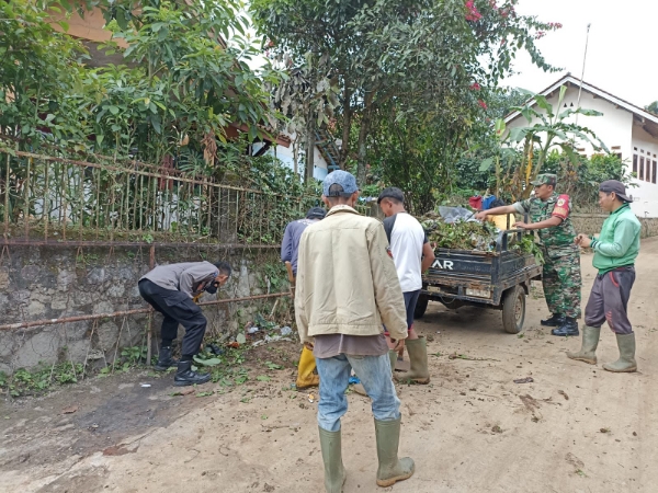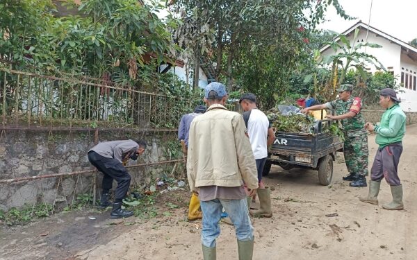 Kab. Bandung,-Petugas Kepolisian dari Polsek Cikancung Polresta Bandung Polda Jabar bersama Anggota Bhabinsa nampak ambil bagian membantu proses Pembersihan sampah dan rumput di Sepanjang jalan Kp. Cisagatan RRw 04 Desa Mekarlaksana Kecamatan Cikancung Kabupaten Bandung, Sabtu ( 11/2/2023).