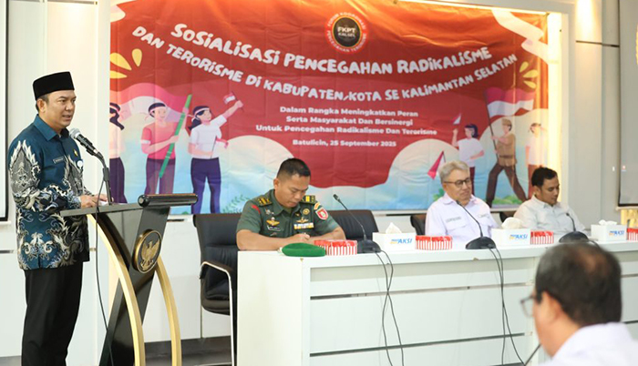 TANAH BUMBU, – Pemerintah Kabupaten Tanah Bumbu (Pemkab Tanbu) bekerjasama dengan Forum Koordinasi Pencegahan Terorisme (FKPT) Provinsi Kalimantan Selatan menggelar Sosialisasi Pencegahan Radikalisme dan Terorisme serta Pengukuran Indeks Kewaspadaan Nasional (IKN) tahun 2025, berlangsung di Ruang Rapat Kantor Bupati, di Batulicin, Kamis (25/09/2025).