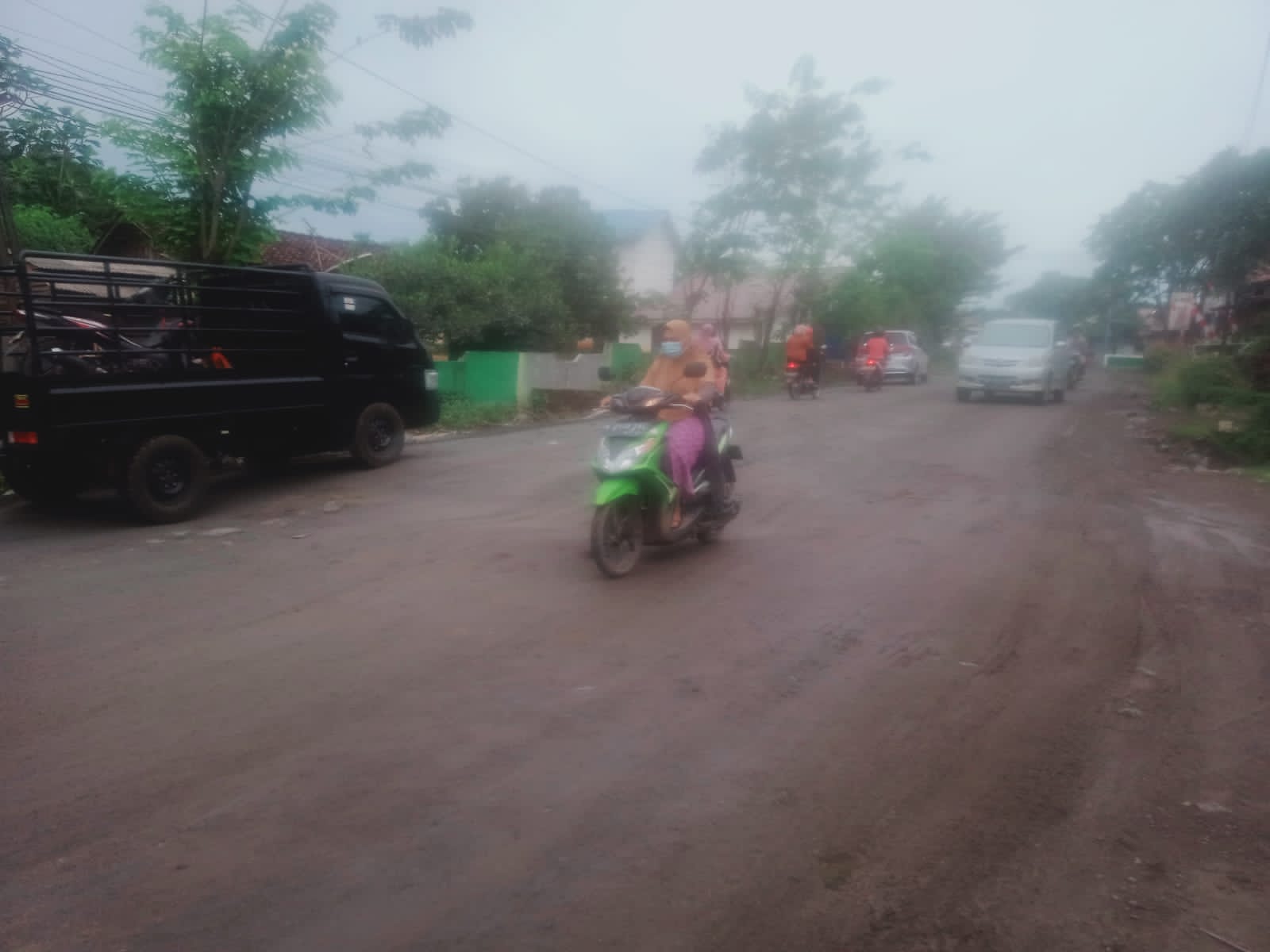 Karena debu masuk kerumah,banyak yang terkena batuk masyarakat kana debu dan pedagang dipingir jalan barang dagangannya terkena debu sehingga omsetnya menurun sejak jalan itu rusak terkesan lamban tindak lanjut perbaikan.