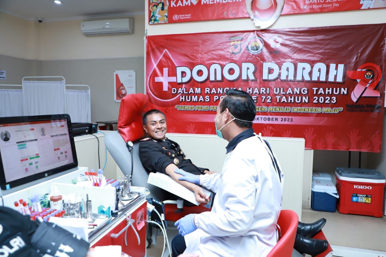 Kegiatan tersebut dipimpin oleh Kabid Humas Polda Jabar Kombes Pol. Ibrahim Tompo S.I.K., M.Si melaksanakan kegiatan donor darah, pemberian bantuan untuk keperluan darah bagi masyarakat yang membutuhkan dalam Rangka memperingati Hut Humas Polri Ke 72.
