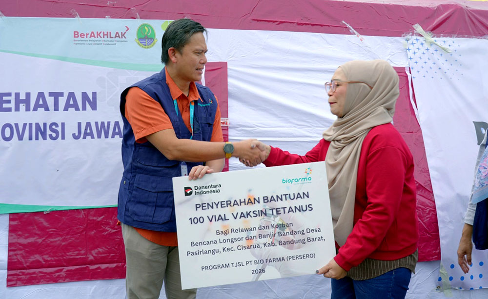 BANDUNG BARAT, — PT Bio Farma (Persero), Badan Usaha Milik Negara Indonesia yang bergerak di bidang farmasi (BUMN Farmasi) yang berkedudukan di Jawa Barat, menyalurkan bantuan kemanusiaan berupa vaksinasi tetanus dan bantuan logistik darurat bagi korban serta relawan bencana tanah longsor di Desa Pasirlangu, Kecamatan Cisarua, Kabupaten Bandung Barat, yang terjadi pada Sabtu, 24 Januari 2026.
