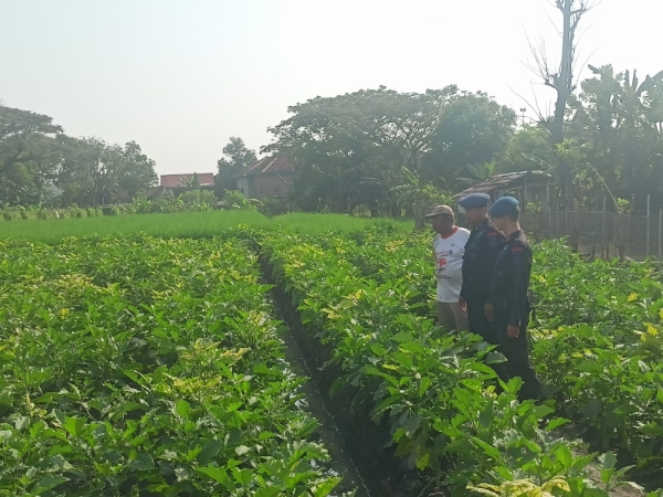 Cirebon, Anggota Kompi 4 Batalyon C Pelopor Satbrimob Polda Jabar Brigadir Efang rahmadi melakukan peninjauan ke Ketahanan Pangan desa Winong Kecamatan Gempol Kab.Cirebon.