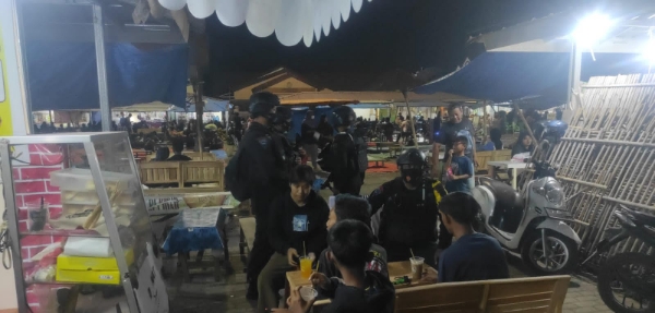 Anggota Brimob mendatangi masyarakat yang sedang duduk di pinggir jalan memberikan himbauan kamtibmas kepada masyarakat anggar selalu waspada dan berhati-hati terutama di malam hari karena kita tidak tahu tindakan kejahatan akan dilakukan, anggota Patroli berpesan kepada masyarakat agar melaporkan jika ada terjadinya tindak pidana atau hal yang di anggap mencurigakan kepada Kewilayahan setempat.