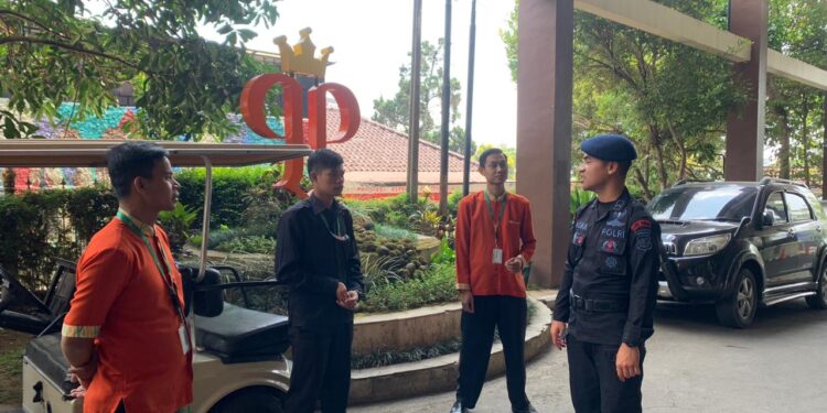 Pelaksanaan patroli tersebut Bripda Rastafara Agra menyambangi pos Security Hotel Palace dan melakukan dialogis dengan petugas Security hotel menyampaikan pesan Kamtibmas dan penyuluhan.