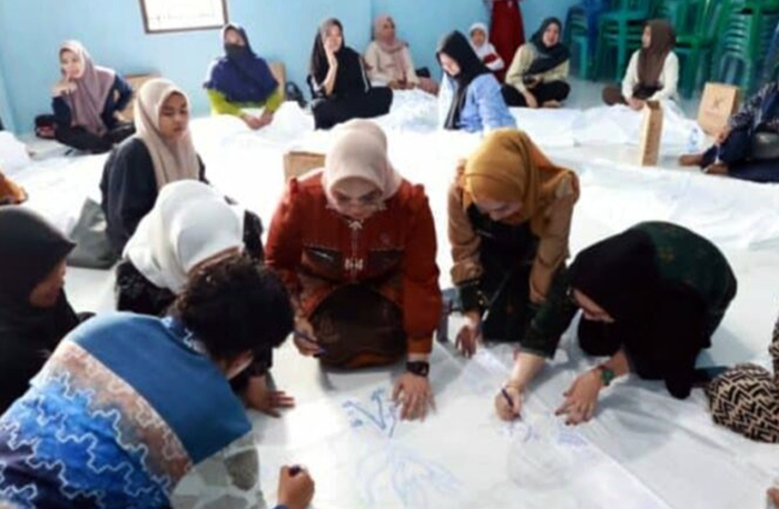 Pelatihan menghadirkan narasumber Sandi Agustinus, Juara 1 Desain Motif Tingkat Kalimantan Selatan sekaligus seorang wirausaha muda syariah. (Ag)