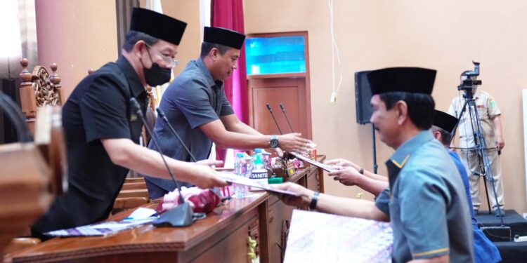 Tanah Bumbu — Dewan Perwakilan Rakyat Daerah (DPRD) Kabupaten Tanah Bumbu (Tanbu) menggelar Rapat Paripurna dalam rangka pemandangan umum Fraksi-fraksi terhadap 2 (dua) Rancangan Peraturan Daerah (Raperda) yang diajukan Bupati HM Zairullah Azhar.