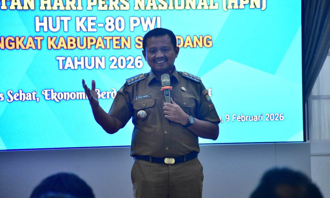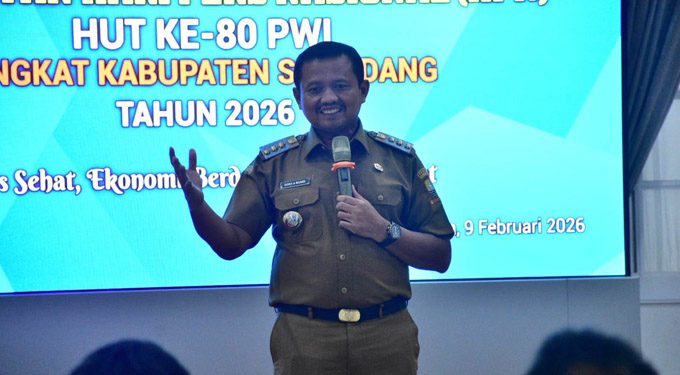 SUMEDANG,– Bupati Sumedang Dony Ahmad Munir menghadiri Peringatan Hari Pers Nasional (HPN) sekaligus Hari Ulang Tahun Persatuan Wartawan Indonesia (PWI) ke-80 Tahun 2026 yang digelar di Gedung Negara, Senin (9/2/2026).