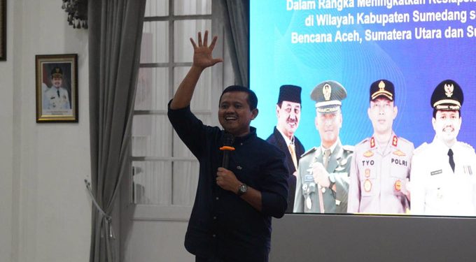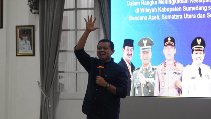 “Sehingga yang tinggal di potensi longsor, banjir mengetahui. Pastikan yang di-share sampai kepada warga masyarakat sampai kepolosok desa. Dari BMKG ke kadis, camat, ke kepala desa, sampai ke grup RW dan RT informasi cuacanya. Itulah arti penting memasifkan medsos untuk melindungi jiwa warga,” ujar Bupati Dony Ahmad Munir, saat Rakor Forkopimda Meningkatkan Kesiapsiagaan Bencana di Wilayah Sumedang di Gedung Negara, Senin (8/12/2025) malam.