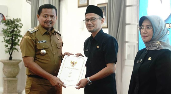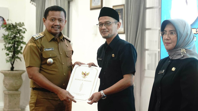 SUMEDANG,– Bupati Sumedang Dony Ahmad Munir menyerahkan Surat Keputusan (SK) kepada 19 orang Pejabat Fungsional yang mendapat tugas tambahan sebagai Kepala Puskesmas serta 6 orang Pejabat Fungsional yang baru menerima SK tambahan sebagai Kepala Puskesmas dan telah memiliki sertifikat manajemen. Penyerahan SK tersebut berlangsung di Gedung Negara, Senin (26/1/2026).