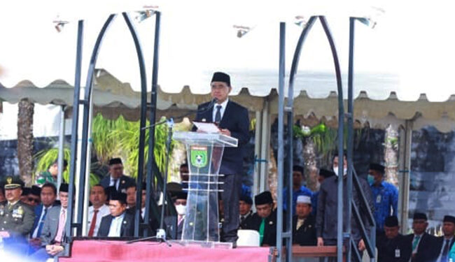 TANAH BUMBU, — Bupati Tanah Bumbu Abah HM Zairullah Azhar menjadi inspektur upacara pada kegiatan apel peringatan Hari Kesaktian Pancasila di halaman Kantor Bupati, Senin (03/10/2022).