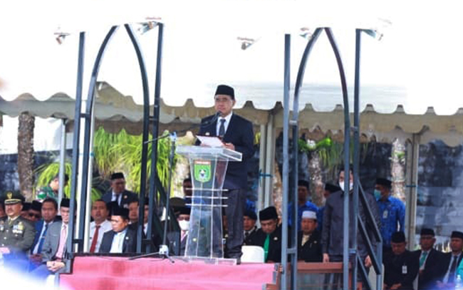 TANAH BUMBU, — Bupati Tanah Bumbu Abah HM Zairullah Azhar menjadi inspektur upacara pada kegiatan apel peringatan Hari Kesaktian Pancasila di halaman Kantor Bupati, Senin (03/10/2022).