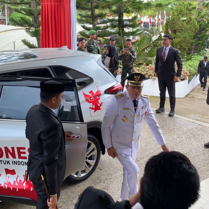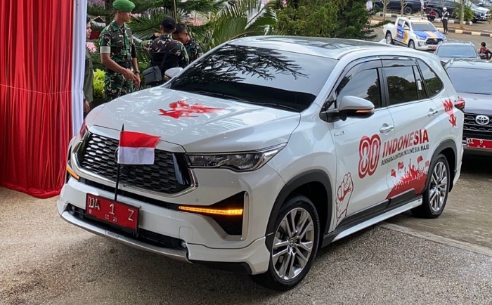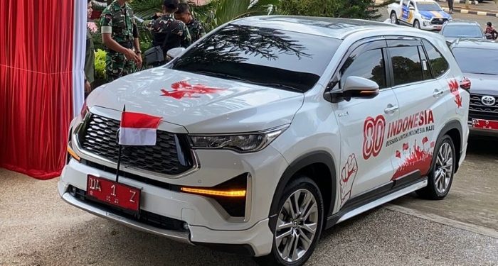 Namun, ada satu momen yang mencuri perhatian, yaitu mobil dinas sederhana Bupati Tanah Bumbu Andi Rudi Latif yang dihiasi branding merah putih dan logo resmi 80 Tahun Kemerdekaan RI.