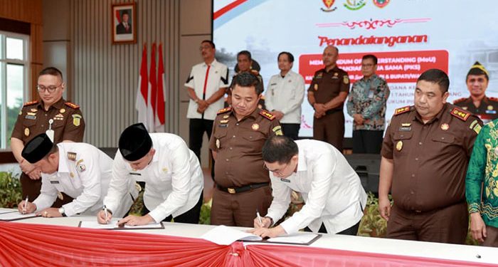TANAH BUMBU, – Bupati Tanah Bumbu, H. Andi Rudi Latif, A.Md.T., S.H., M.M., menandatangani Memorandum of Understanding (MoU) bersama Kepala Kejaksaan Tinggi Kalimantan Selatan dan Gubernur Kalimantan Selatan terkait Implementasi Pidana Kerja Sosial berdasarkan Undang-Undang Nomor 1 Tahun 2023 tentang Kitab Undang-Undang Hukum Pidana, berlangsung di Kantor Kejati Kalsel, Banjarbaru, pada Rabu, 10 Desember 2025.