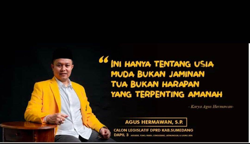 “Jadi, ini hanya tentang usia. Muda bukan jaminan, tua bukan harapan yang terpenting amanah. Pun demikian dengan saya, ogah mengumbar janji terpenting saya harus bisa memberikan yang terbaik bagi masyarakat, jika nanti terpilih,” papar Agus Hermawan yang berangkat nyaleg dari Partai Golkar itu.