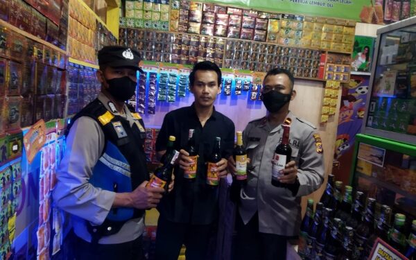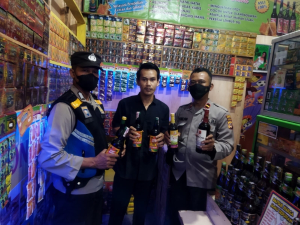 Antisipasi terjadinya peredaran minuman keras (miras) beralkohol, Jajaran Polsek Citamiang Polres Sukabumi Kota Polda Jabar melakukan razia rutin ke toko-toko.