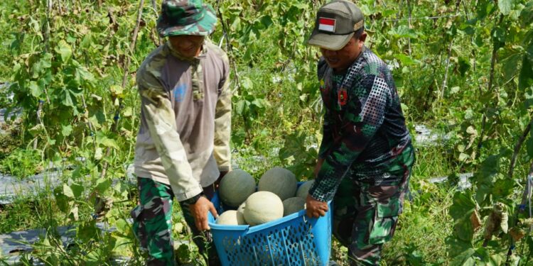 Tanah Bumbu — Dandim 1022/Tanah Bumbu, Letkol Inf Aldin Hadi, S.H.,M.Tr (Han) meninjau langsung kegiatan panen buah Melon anggota Kodim 1022/Tnb desa Sari Gadung kecamatan Simpang Empat kabupaten Tanah Bumbu. Jum’at (22/06/2023).