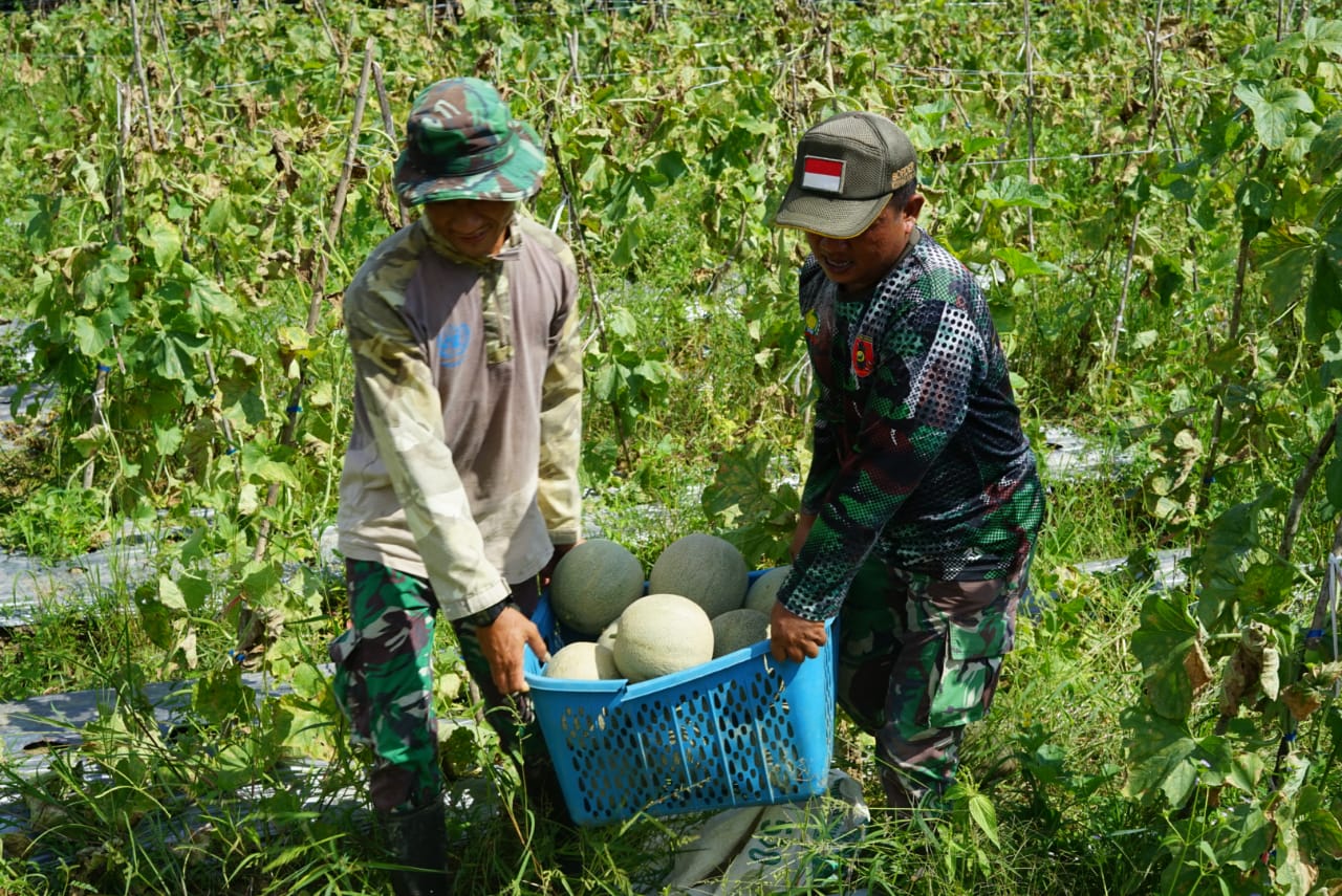 Kegiatan panen buah Melon digelar oleh sertu Kukuh beserta dua orang anggota lainnya yaitu serda Andi dan Serda Yudiono yang semua berdinas di Makodim bagian staf Teritorial Kodim 1022/Tnb, yang sama-sama menggarap dari awal berekebun sampai akhirnya membuahkan hasil buah yang sangat segar dan manis tampak dihadiri oleh Dandim 1022/Tnb untuk ikut memanen secara langsung hasil jerih payah anggota tersebut.