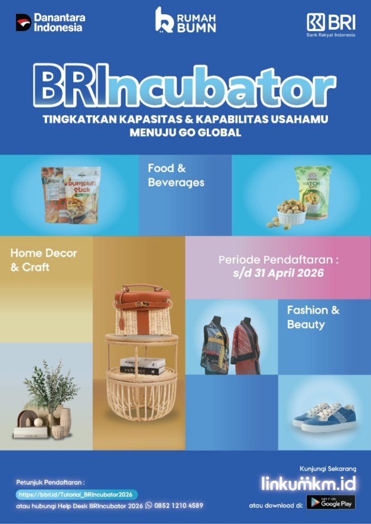 Pelaku UMKM yang berminat dapat mengakses informasi melalui laman resmi linkumkm.id atau panduan teknis di bbri.id/Tutorial_BRIncubator2026. Bantuan juga tersedia melalui layanan Help Desk WhatsApp di nomor +62 821-1130-1533.